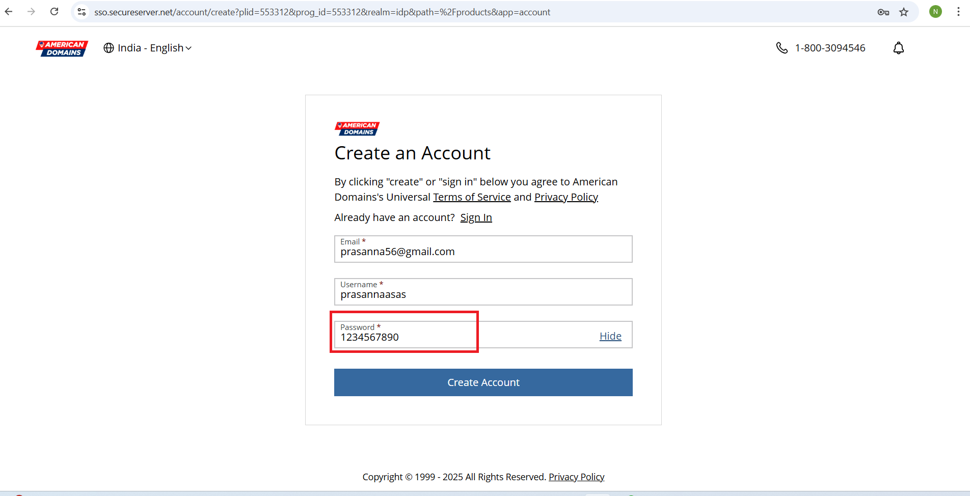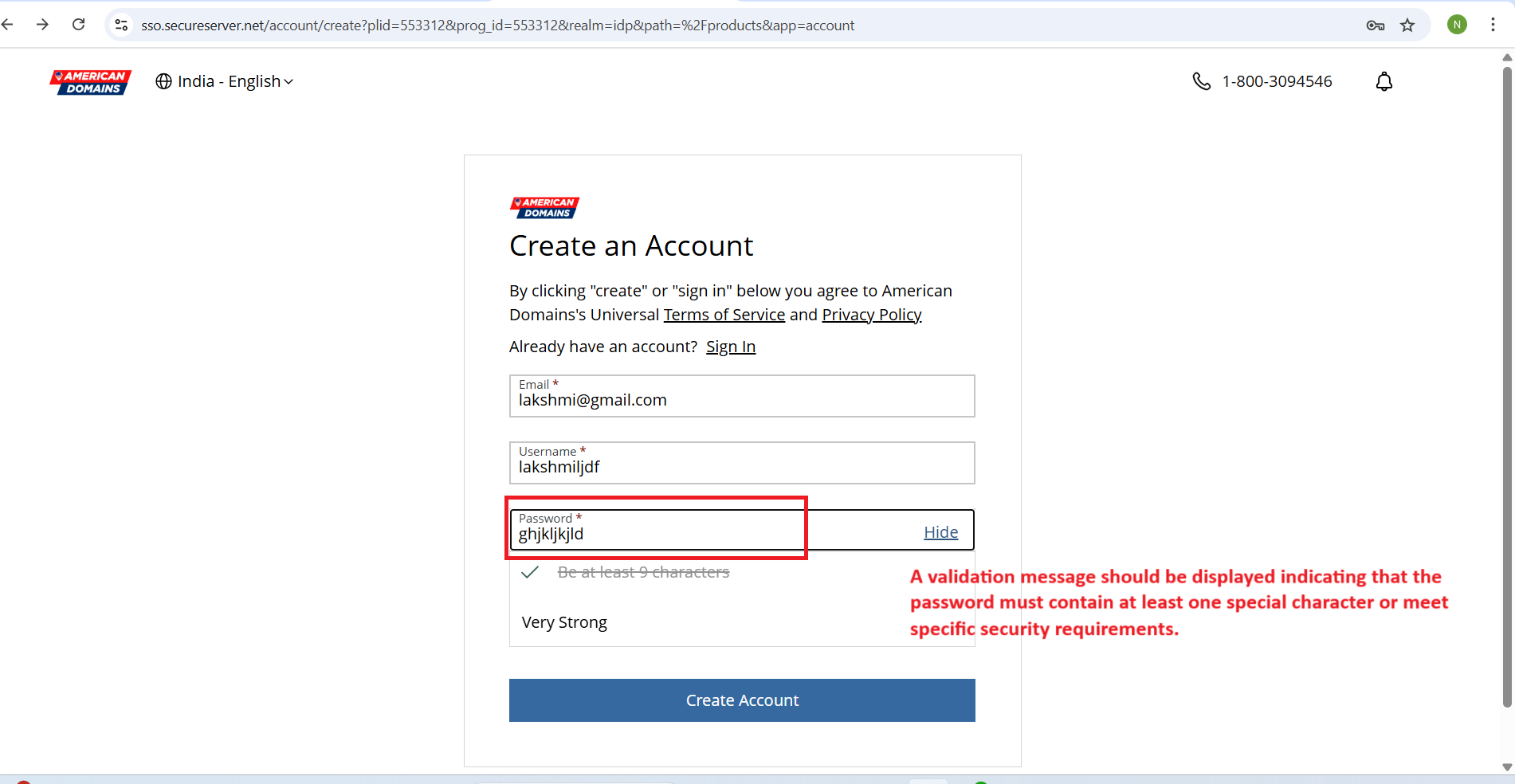 openCreate an Account section – when the user enters invalid details in the password field (missing special character), the system does not display any validation message issue: