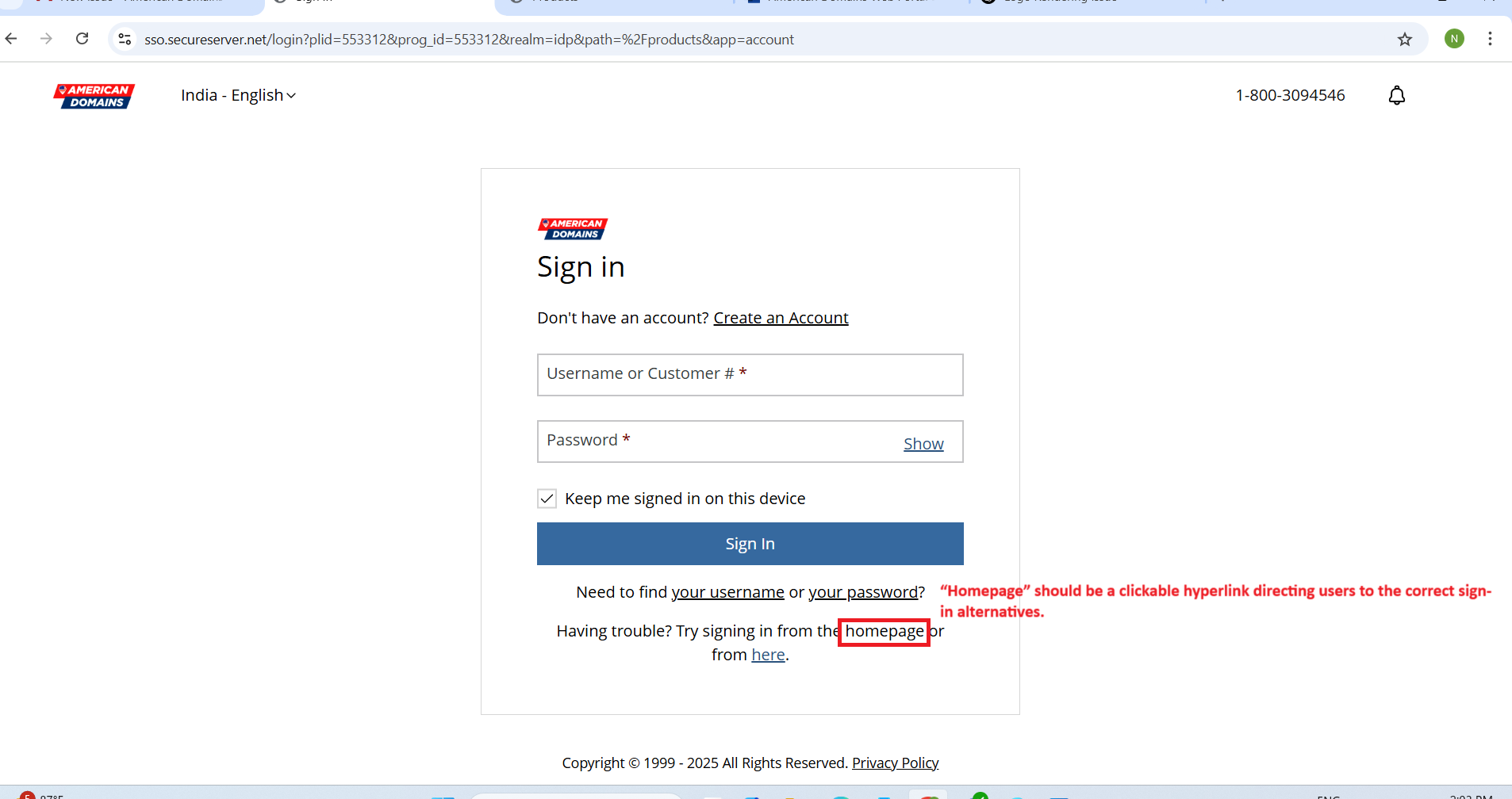 - Instead, the “homepage” should be a clickable hyperlink directing users to the correct sign-in alternatives.