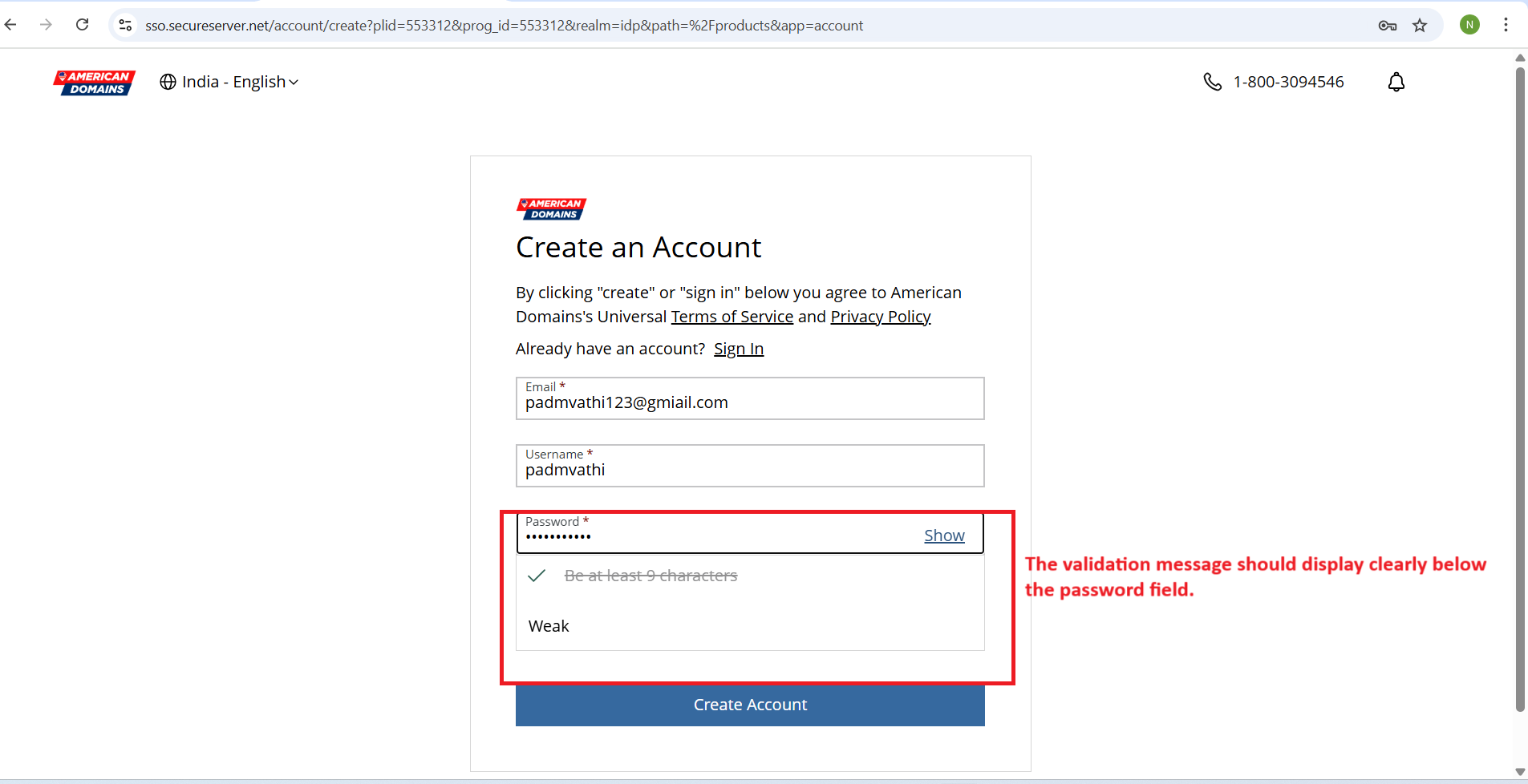 - Instead, the validation message should display clearly below the password field, without visual interference.