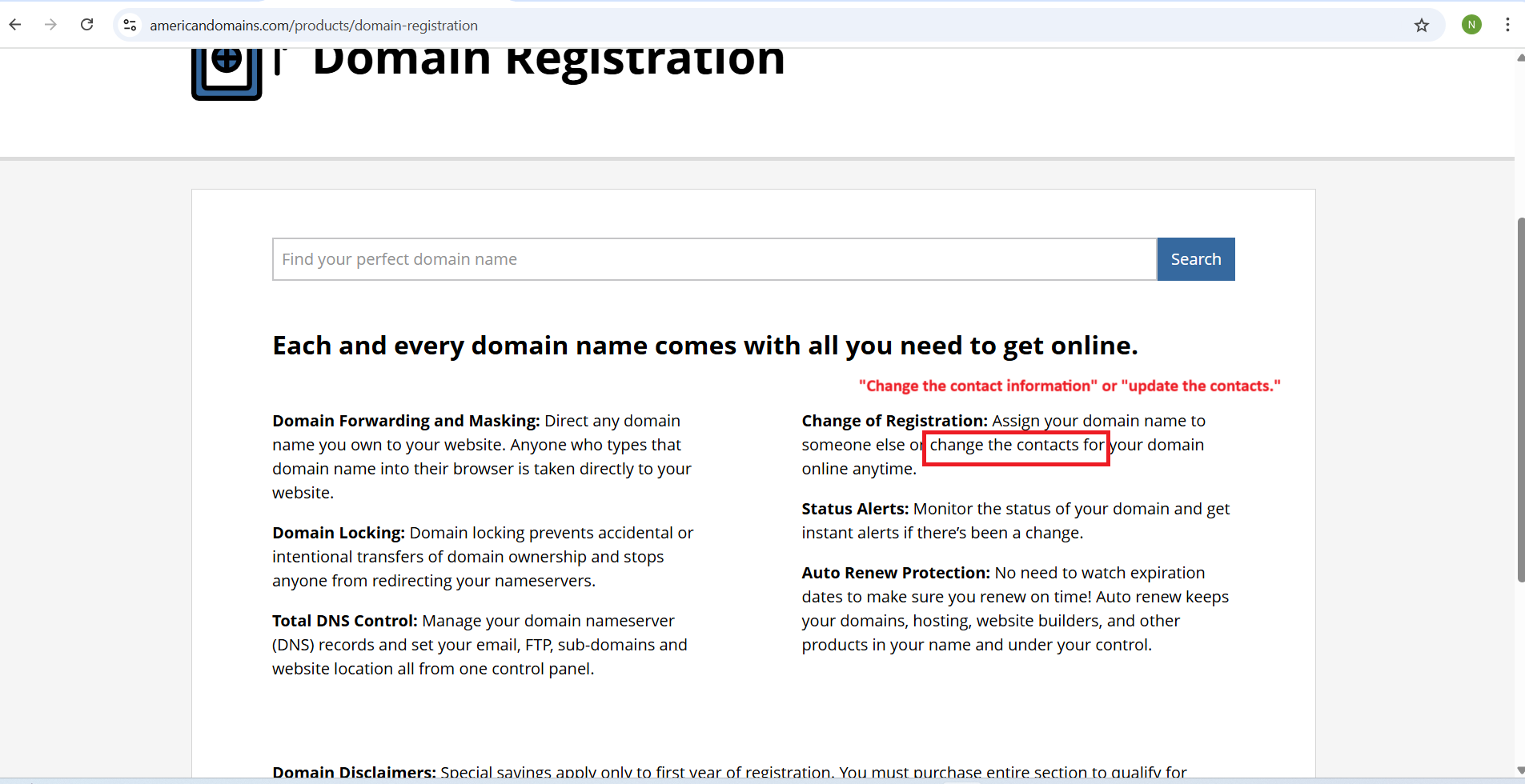 openDomians -- Domain Registration page -- Change of Registration section grammatical issues: