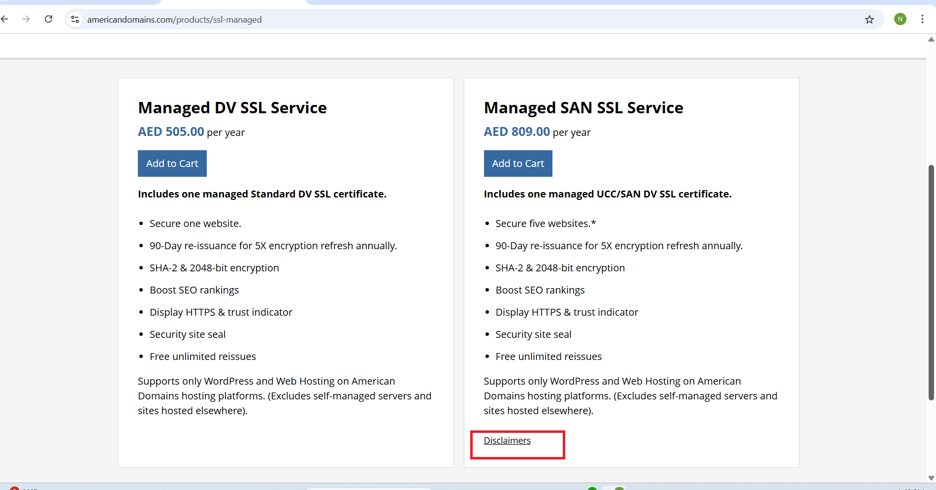 - In the Top Header section under Websites / Security / Hosting subfields, when the user hovers over the “Disclaimer” link, it does not visually highlight (e.g., no color change)