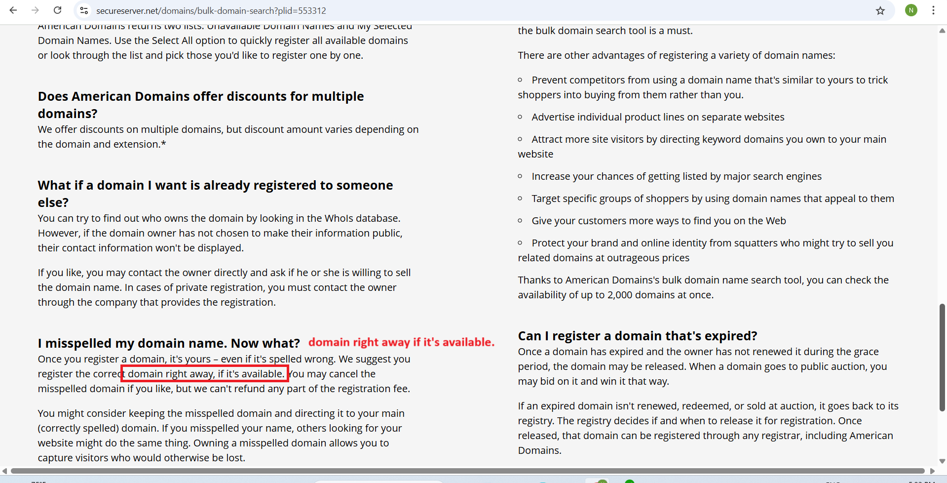 openDomains -- Bulk Registration page -- I misspelled my domain name. Now what? The comma after "right away" is the unnecessary issue: