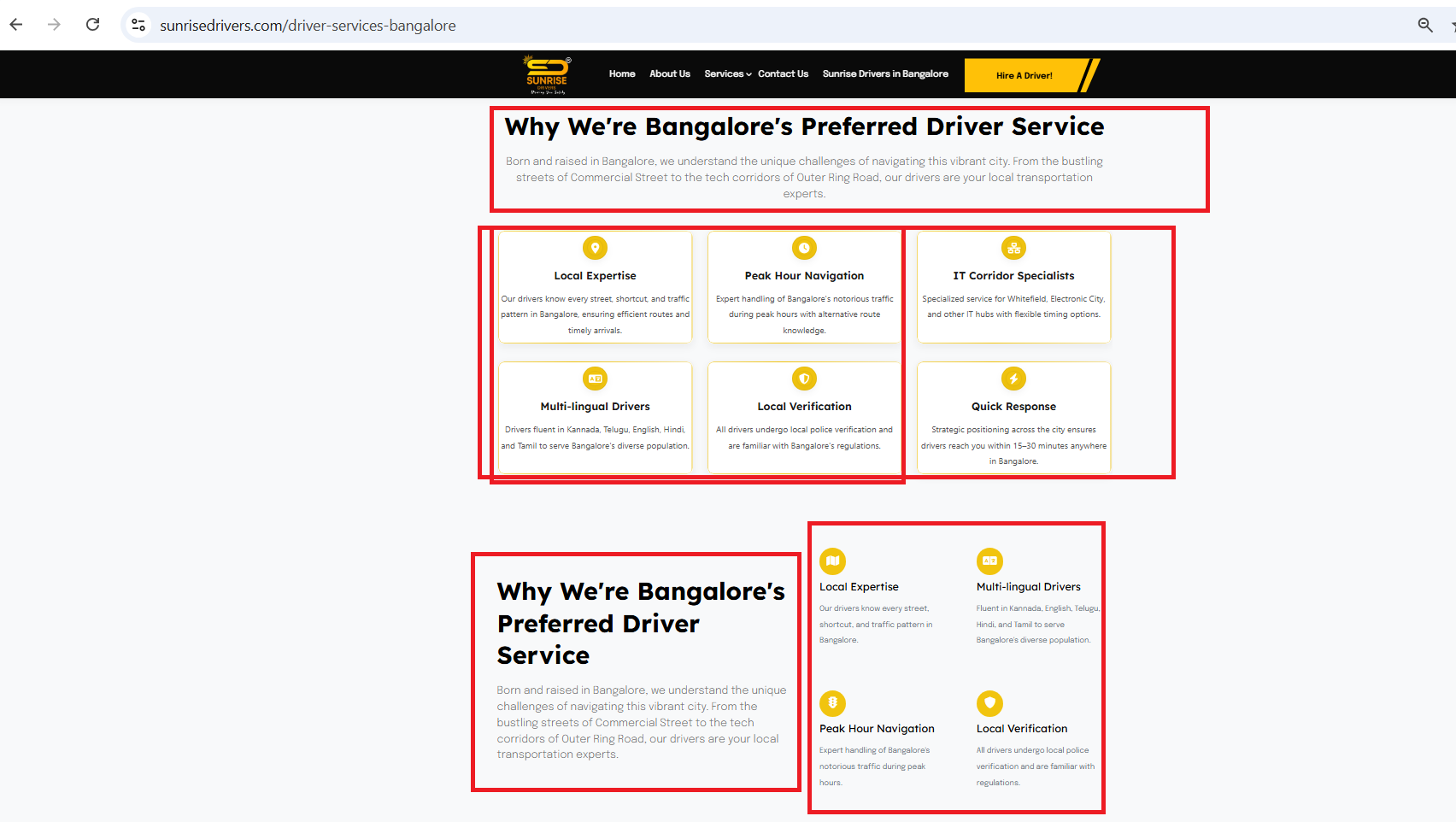 openTop of the Header section Sunrise Drivers in Bangalore – scroll down Why We're Bangalore's Preferred Driver Service section multiple times display issue: