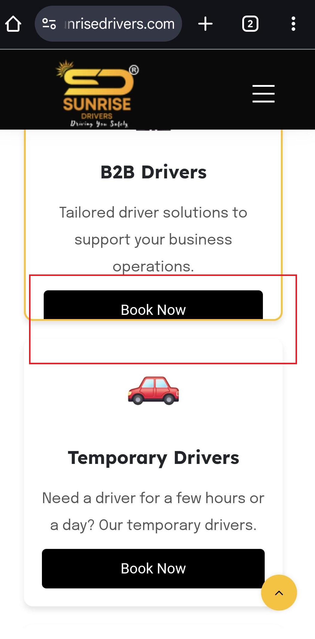 open(Mobile Browser) Home page – Scroll down to “Find the Perfect Service for Every Need!” section – B2B Drivers and Temporary Drivers spacing issue:
