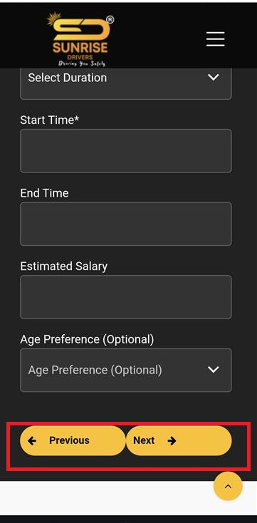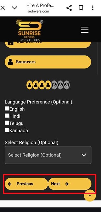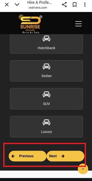 - The Previous and Next buttons are not properly aligned; there is no space between them in the mobile browser view.
