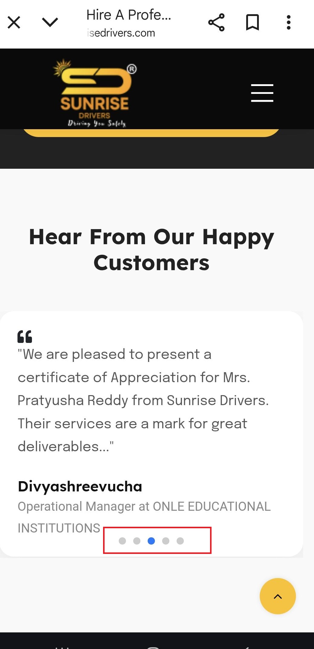 open(Web/Mobile Browser) Bookings page – Scroll down to the Hear From Our Happy Customer section – 5 dots merged issue: