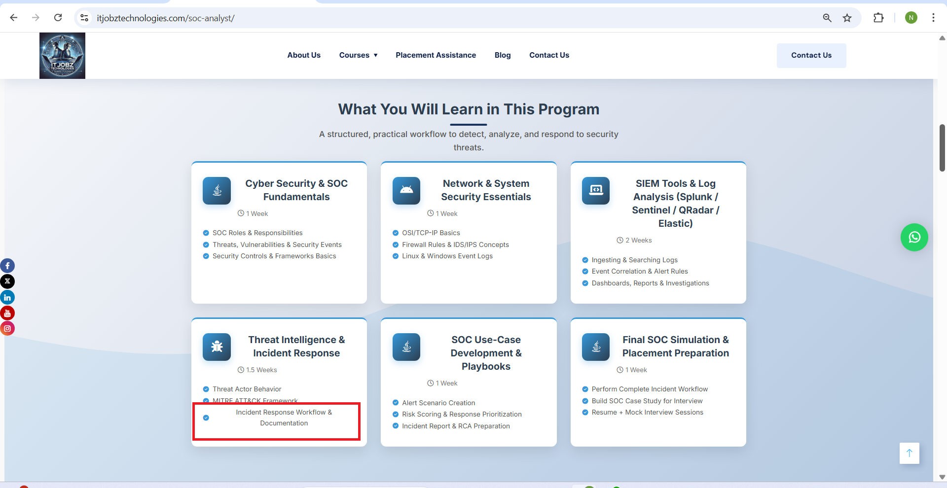 openCourses – Cyber Security & Networking (SOC Analyst) – “Threat Intelligence & Incident Response” Block Alignment Issue (Third Point Misalignment) issue: