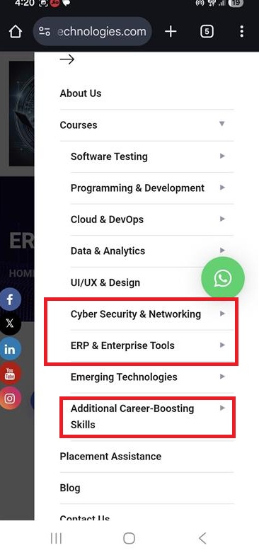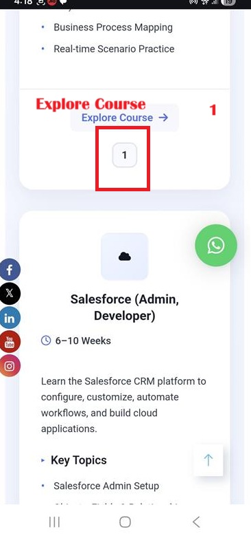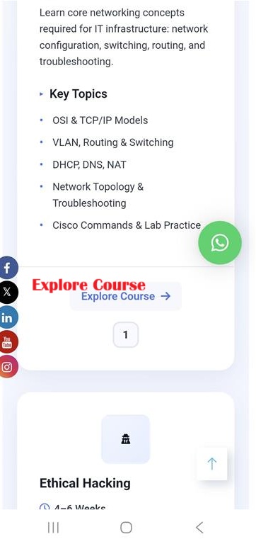 - On mobile browsers, under Cyber Security & Networking, ERP & Enterprise Tools, and Career Skills pages, the program cards in the Skill Development section display misaligned card numbers.