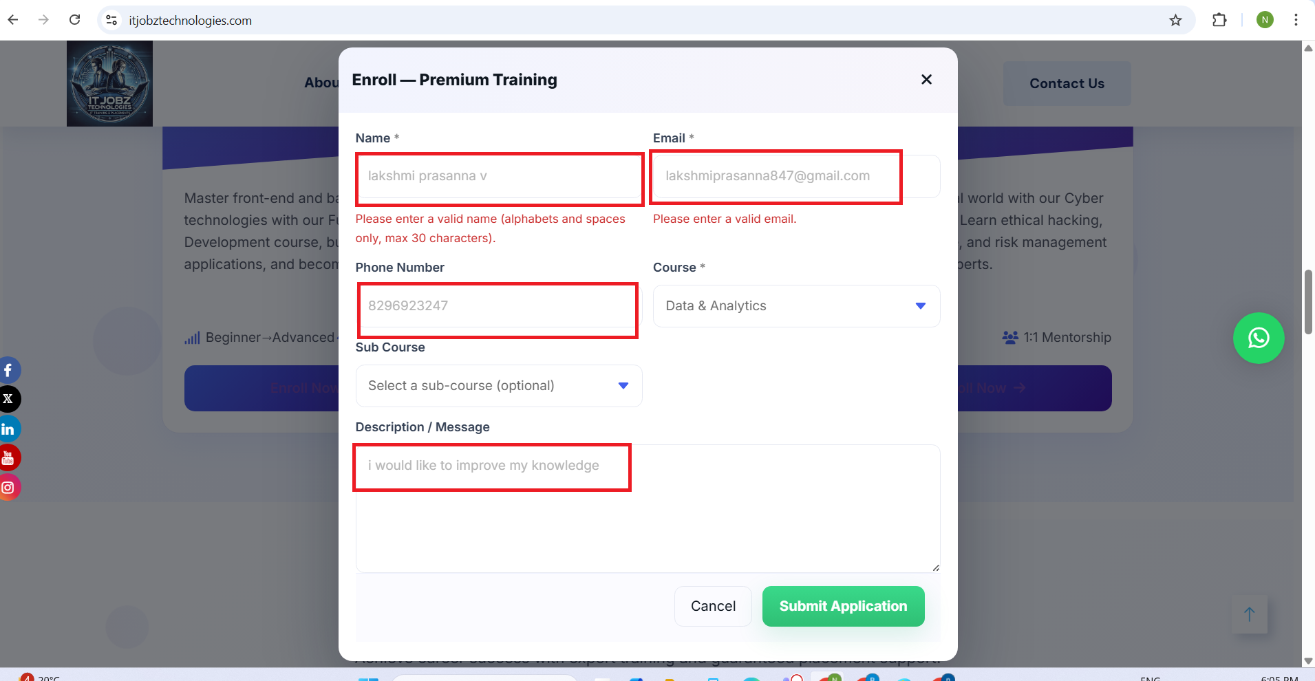 openHome page -- scroll down -- Premium Training Programs Section clicks Enroll Now button – Enroll Premium Training section Entered text in input fields is not visible properly issue: