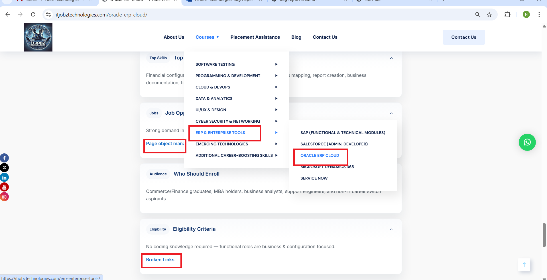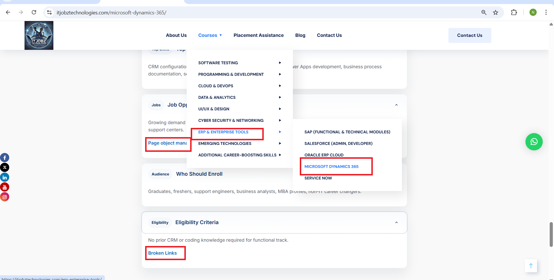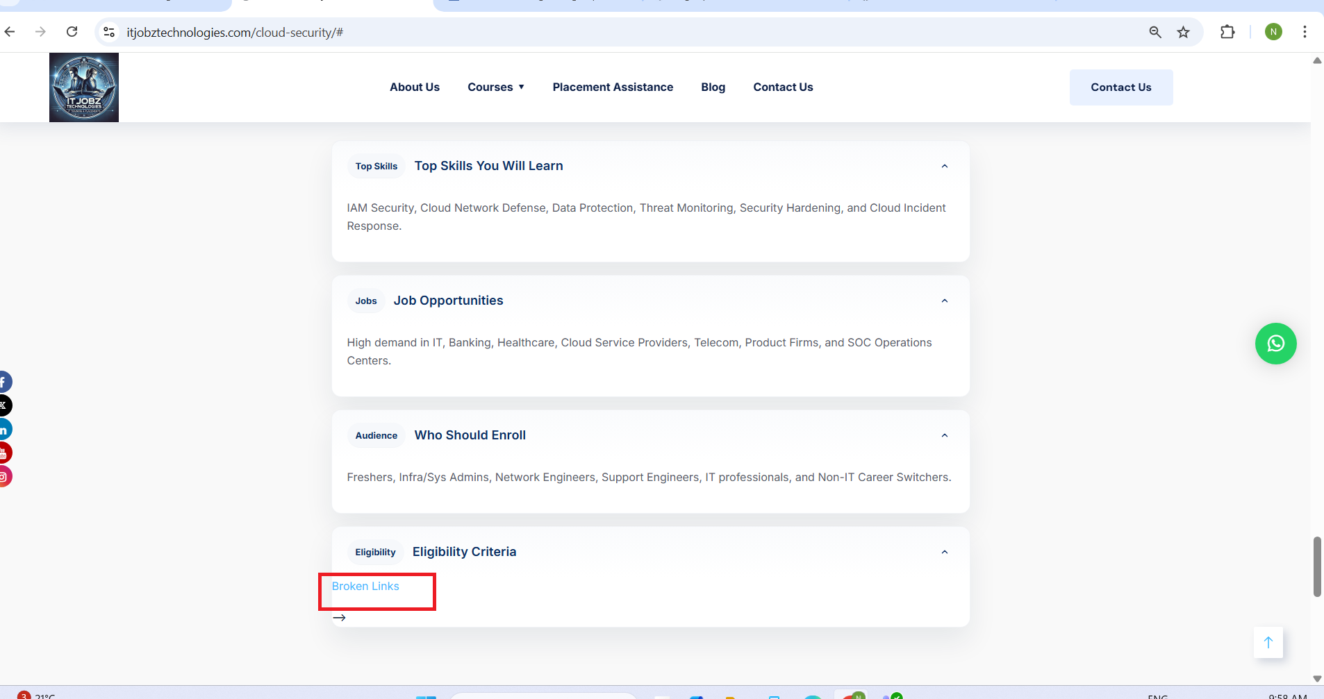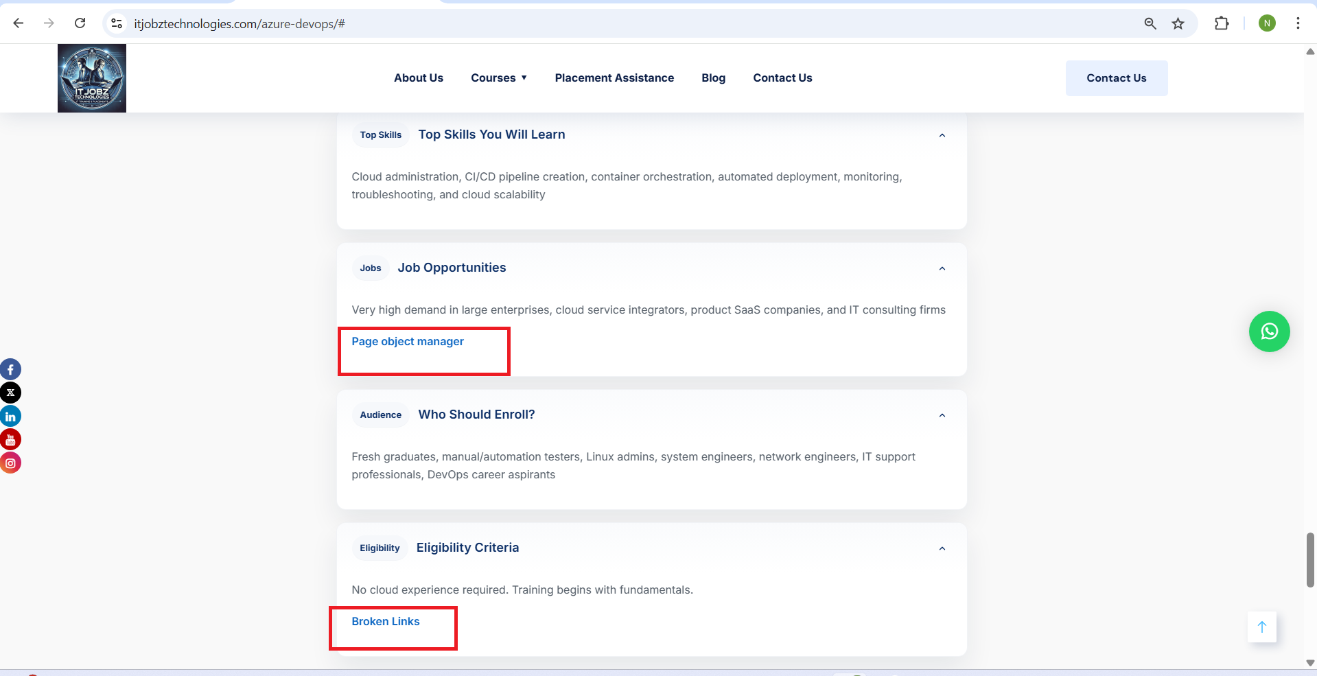 openCourses → Selected Sub-Course → Accordion Section – “Page object manager / Broken Links” Click Redirects to Top of the Page Issue: