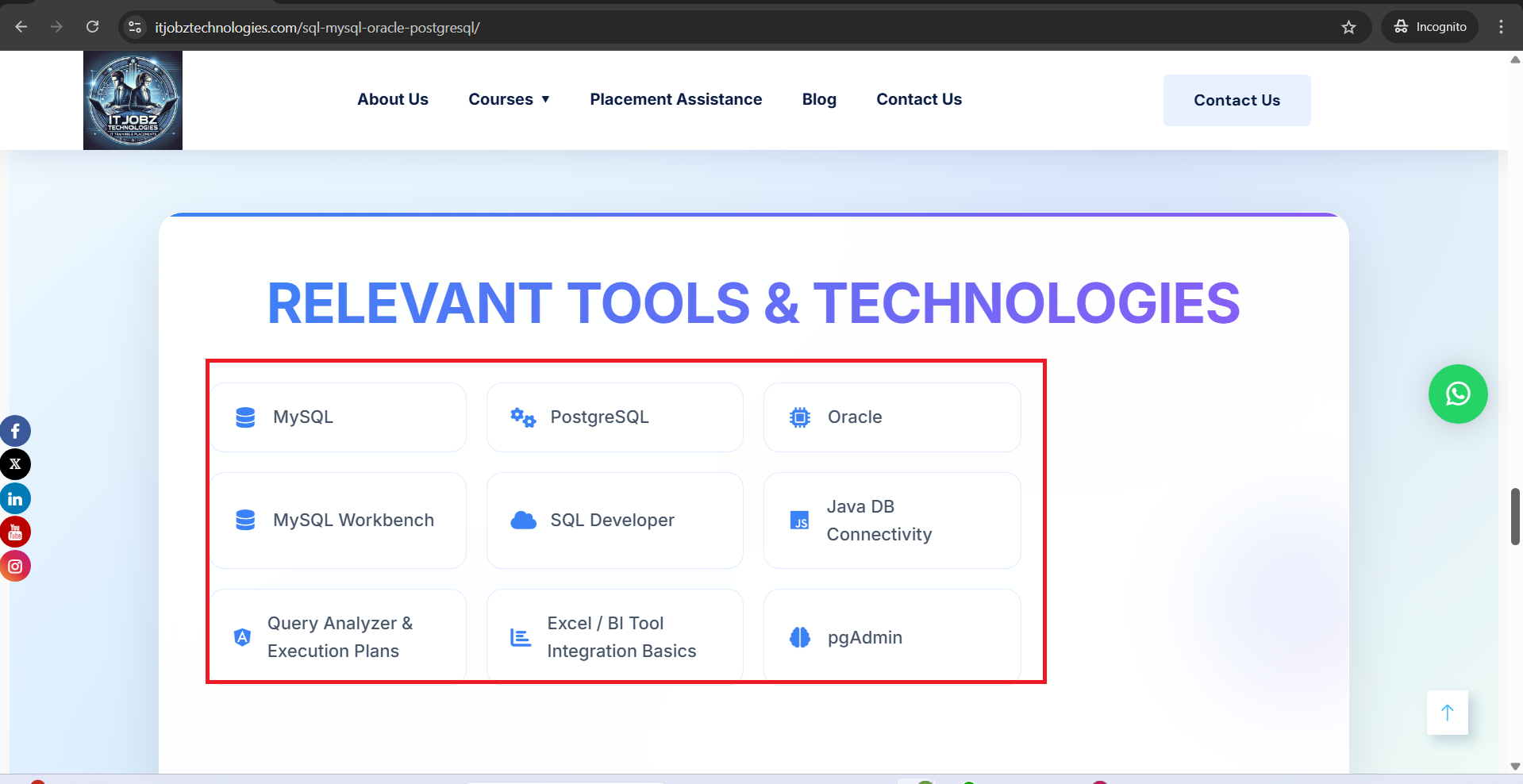 open(Web/Mobile Browser) courses – Data & Analytics – SQL page RELEVANT TOOLS & TECHNOLOGIES Section – Card Alignment Issue: