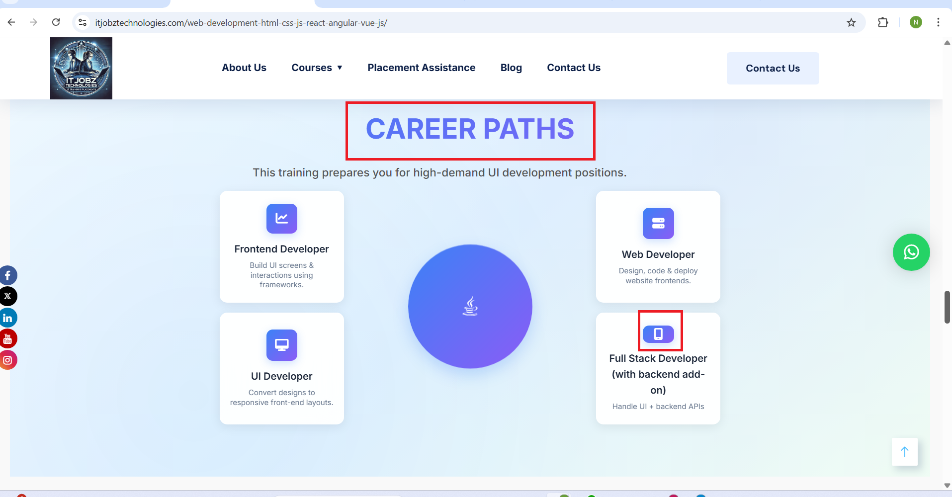- The icons/cards in the Career Paths section are not aligned properly. Some blocks appear vertically misaligned, creating uneven spacing.