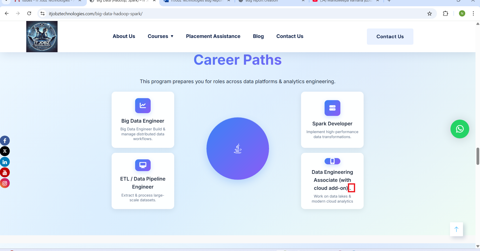 openCourse -- Data & Analytics -- Big Data (Hadoop, Spark)--Career Paths section – Extra Full Stop Displayed in “Data Engineering Associate (with cloud add-on).” issue: