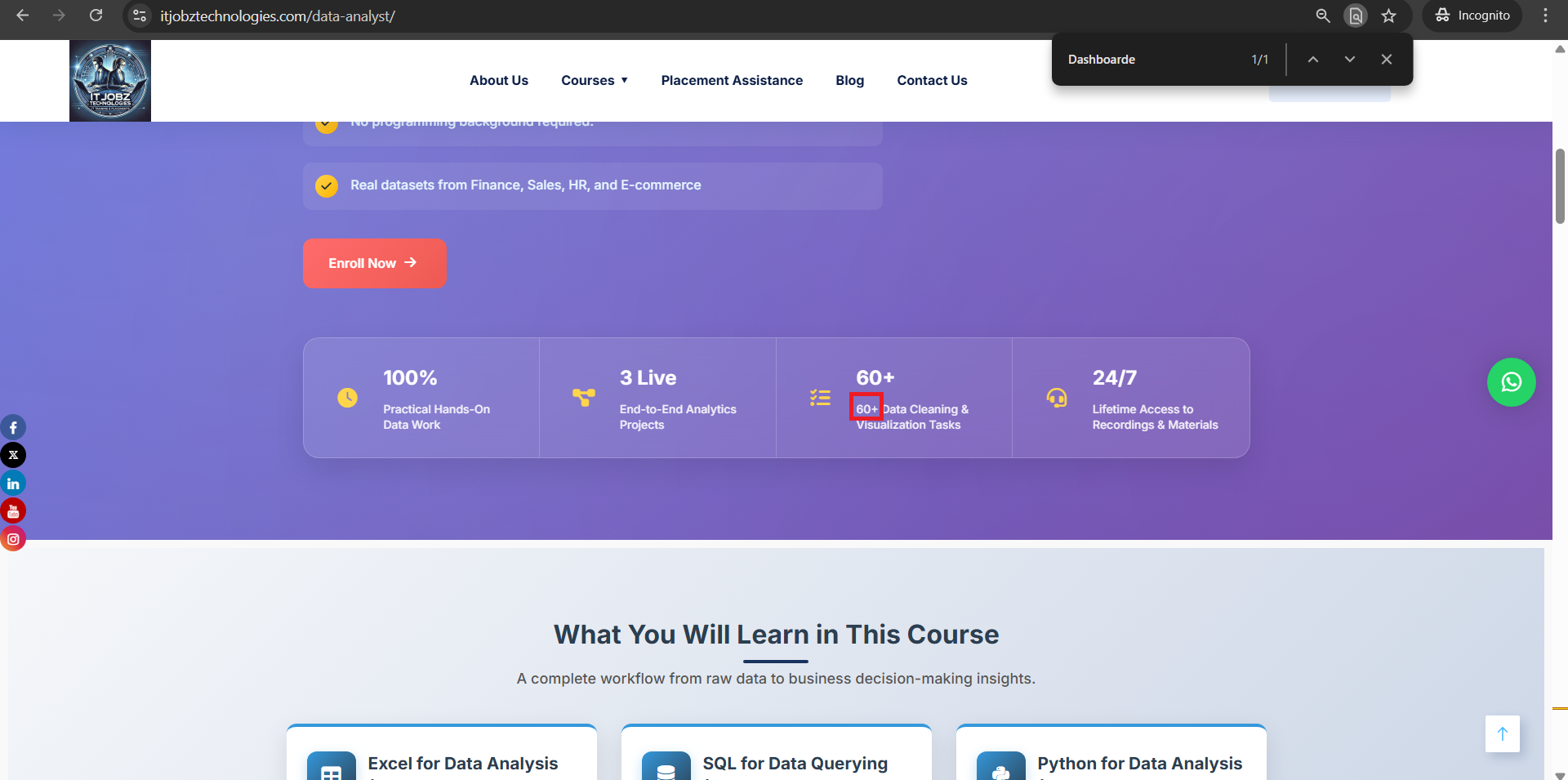 openCourses -- Data & Analytics(Data Analyst) page – Multiple Content Issues in “Project You Will Work On” Section :