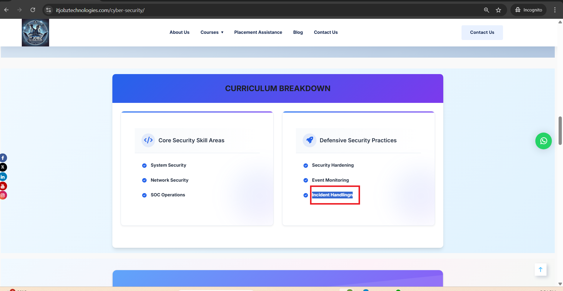 openCourses -- Cyber Security & Networking(Cyber Security) page -- Spelling Errors in Course Content Sections issue: