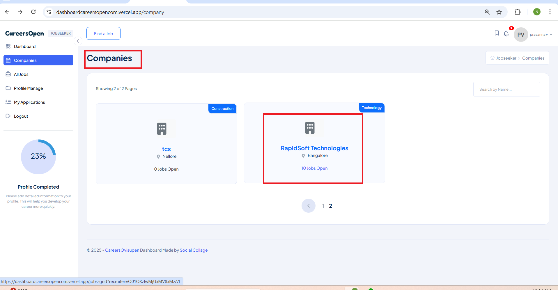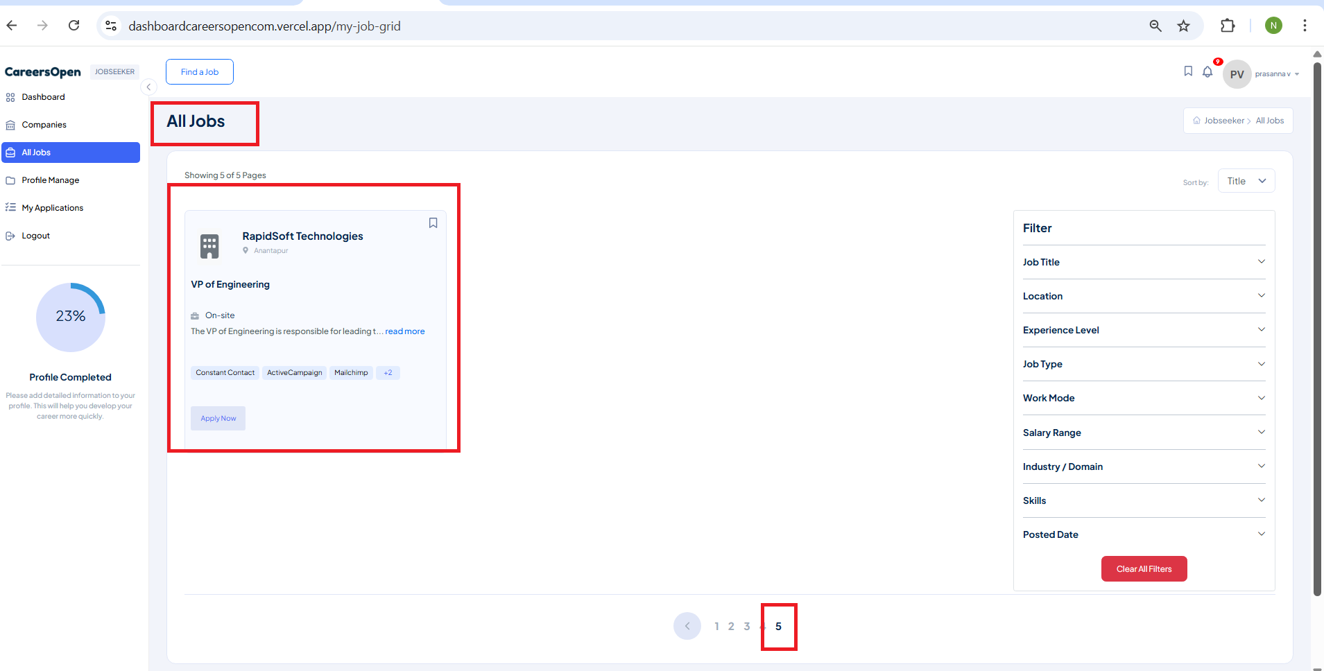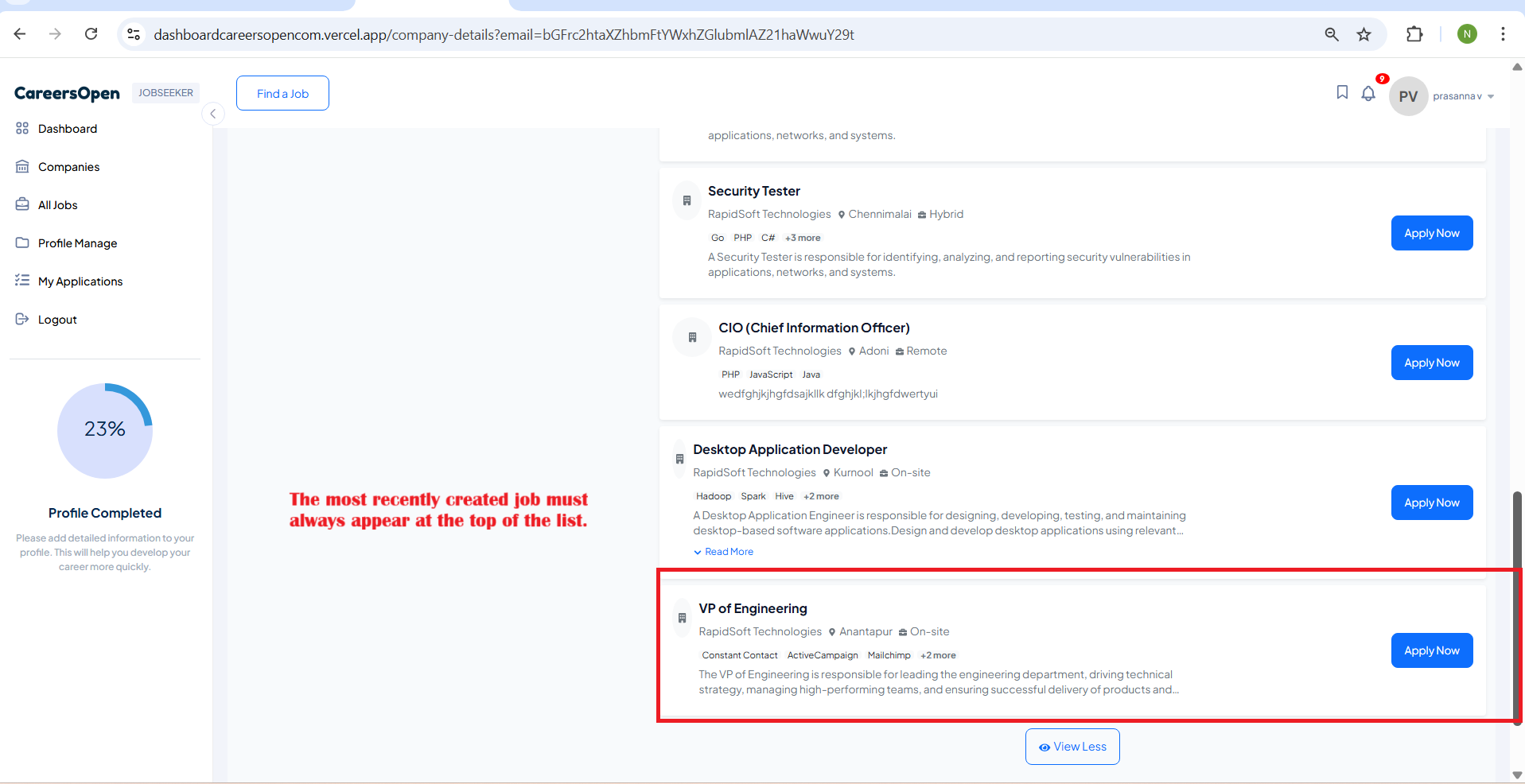- On the (Job Seeker) Company Details page, inside the Latest Job Openings section: Newly created jobs are not shown at the top.