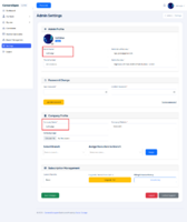 closed(Admin) Settings – Admin Settings page – Admin Profile & Company Profile sections – Admin Name and Company Name fields show the same value issue: