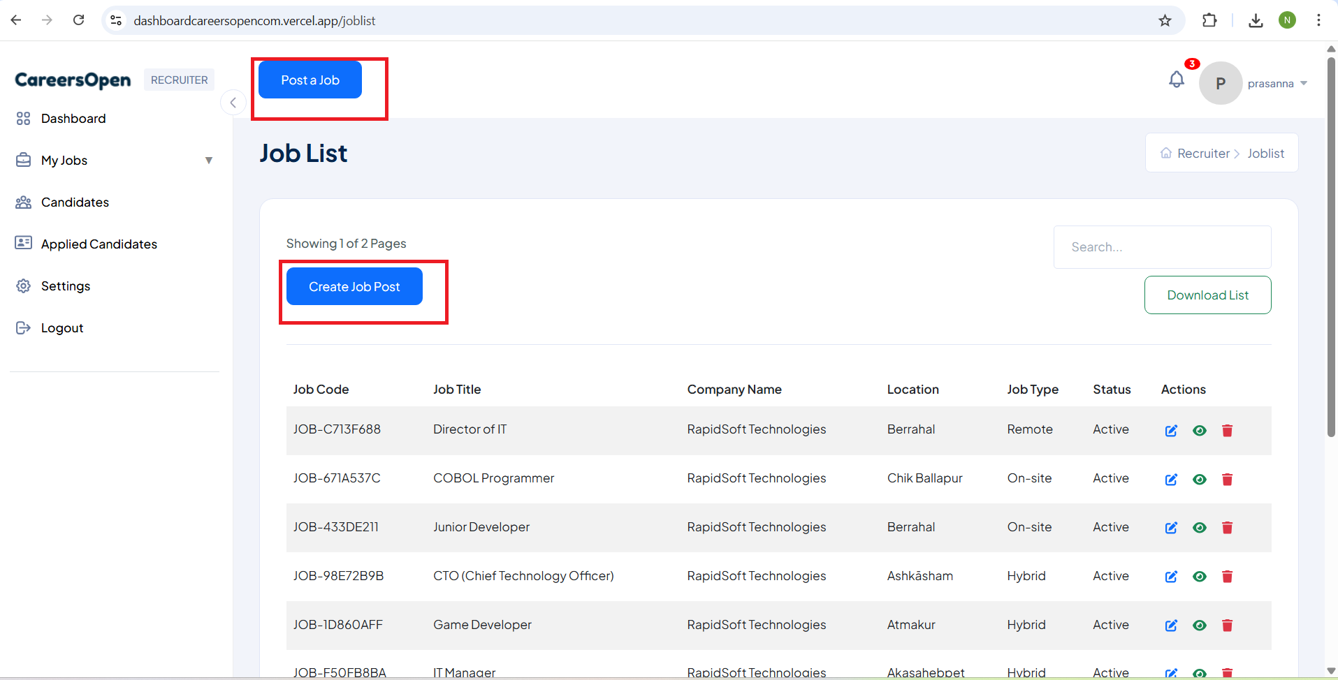 - In the Post a Job / Create Job form, the Job Description section allows the user to enter and submit a single character (e.g., “s”) without showing any validation error.