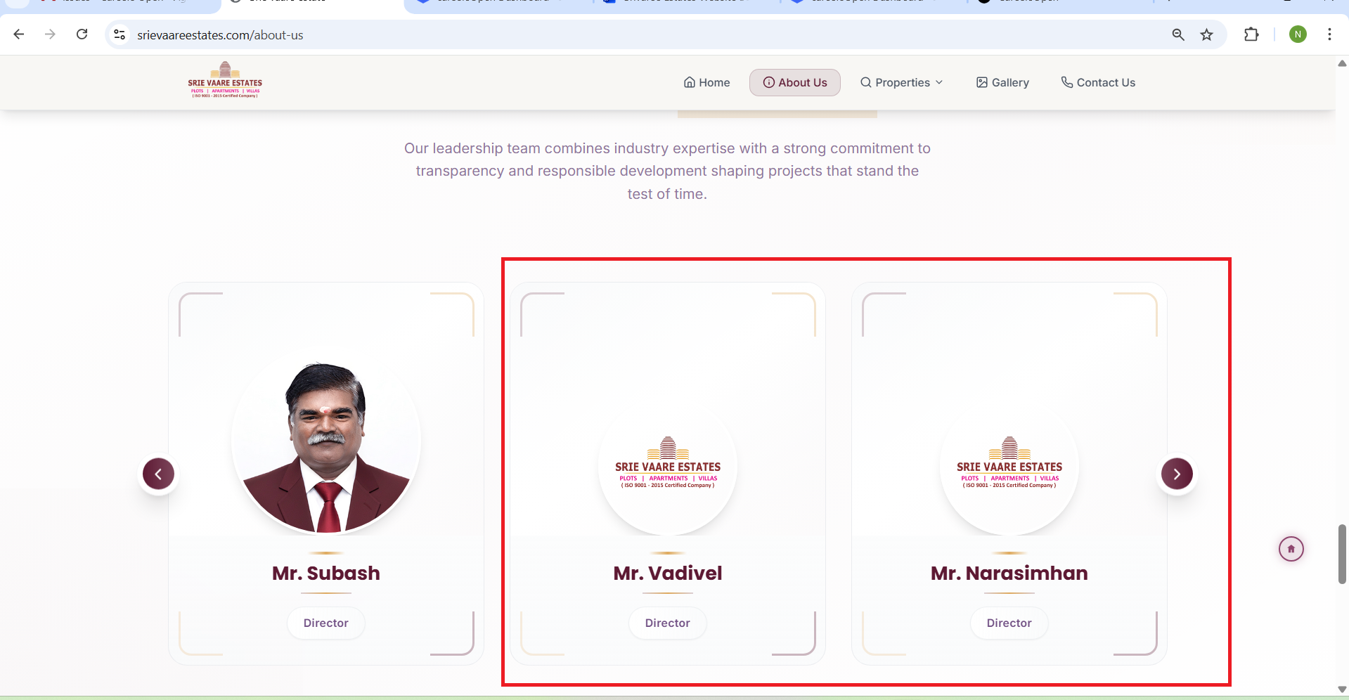 openAbout us page – scroll down -- Meet Our Directors – Mr. Vadivel & Mr. Narasimhan images not displaying issue: