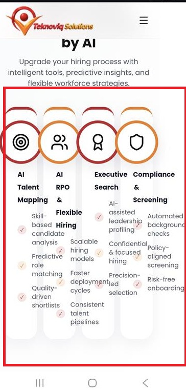 - In the “Our Experience” section, the cards are not properly aligned in mobile view. The spacing and positioning of the cards appear uneven.